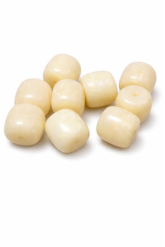 Perlina cilindro realizzata in resina acrilica liscia e disponibile in un’ampia gamma di finiture marmorizzate, traslucide o color pastello.