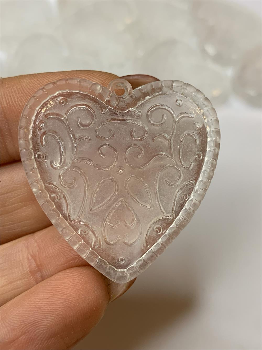 Perlina cuore con decori, TRASPARENTE SATINATO31 x 31 x 15 mm